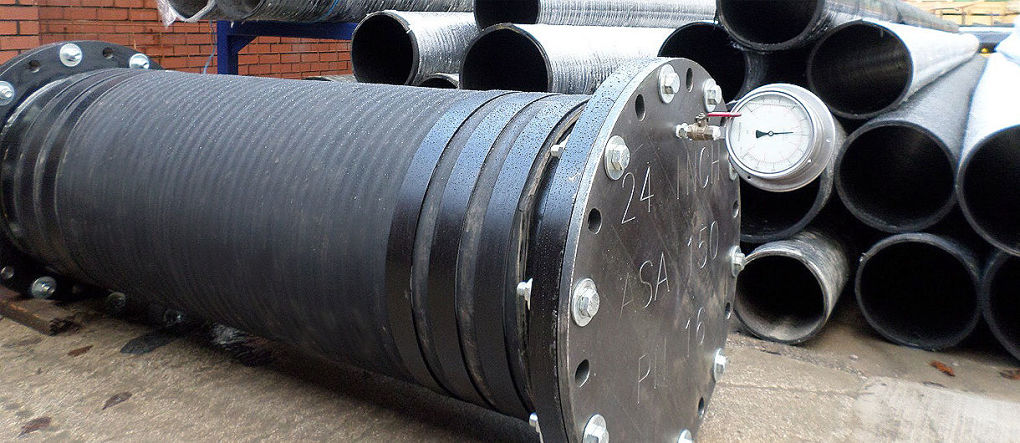 24" Water suction and discharge hose assemblies with triple band swaged ASA150 Flanged fittings