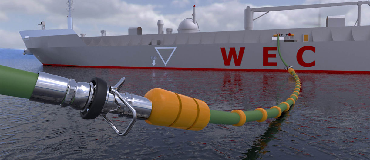Fuel unloading hose assemblies with high visibility secondary containment cover, floats and breakaway couplings are also available